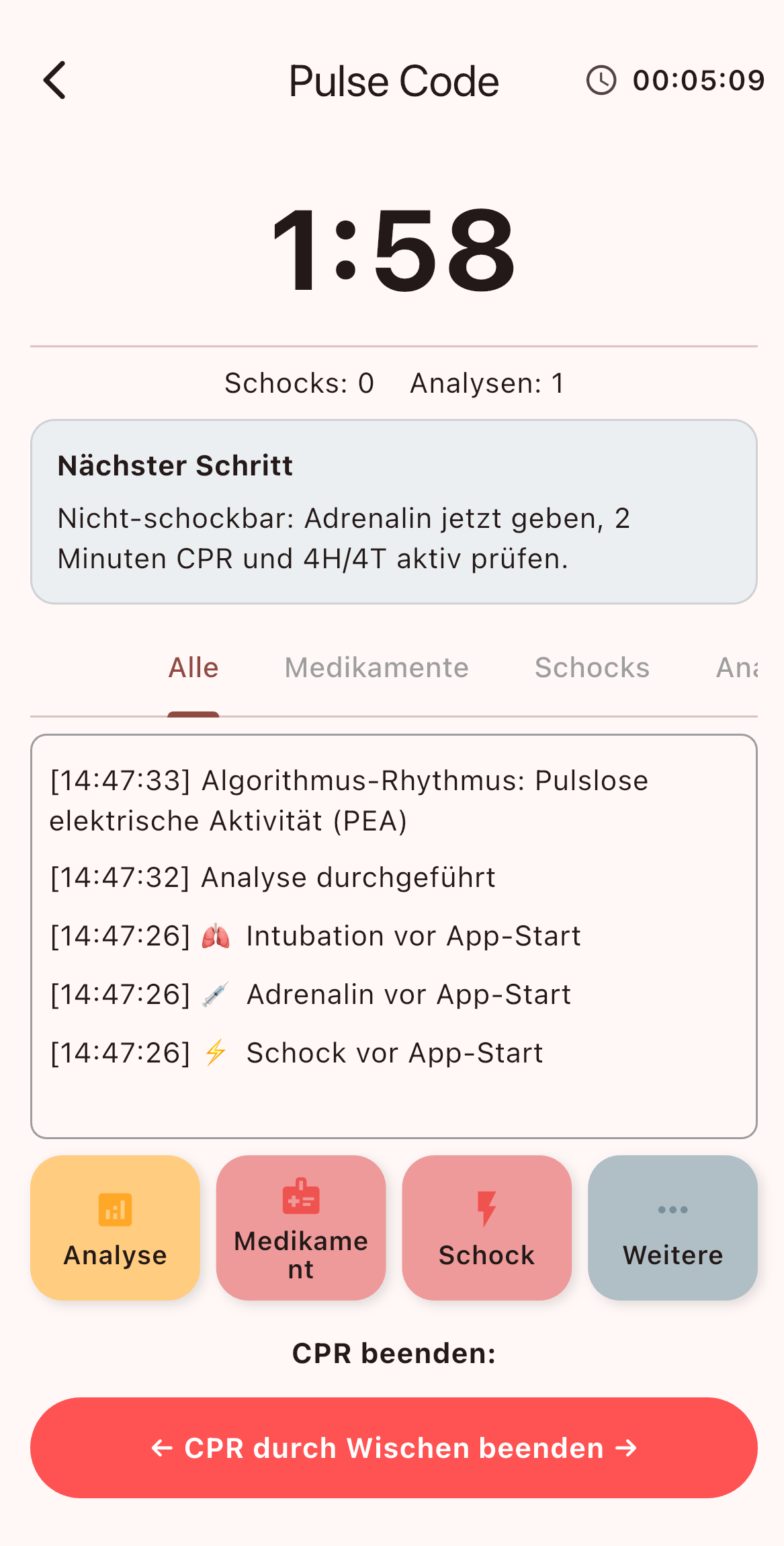 Fertiges Reanimationsprotokoll direkt nach dem Einsatz verfügbar.