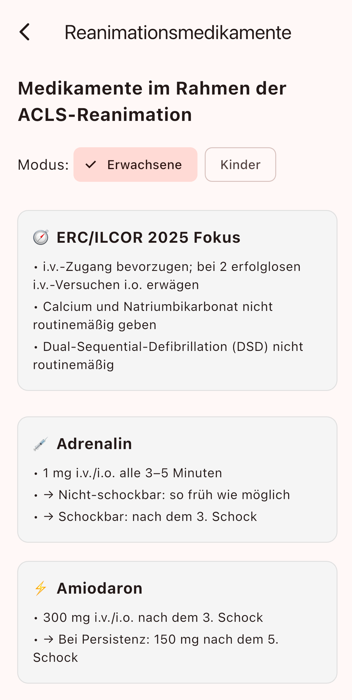 Vordefinierte Dosierungen nach Leitlinie – schnell auswählbar und dokumentiert.